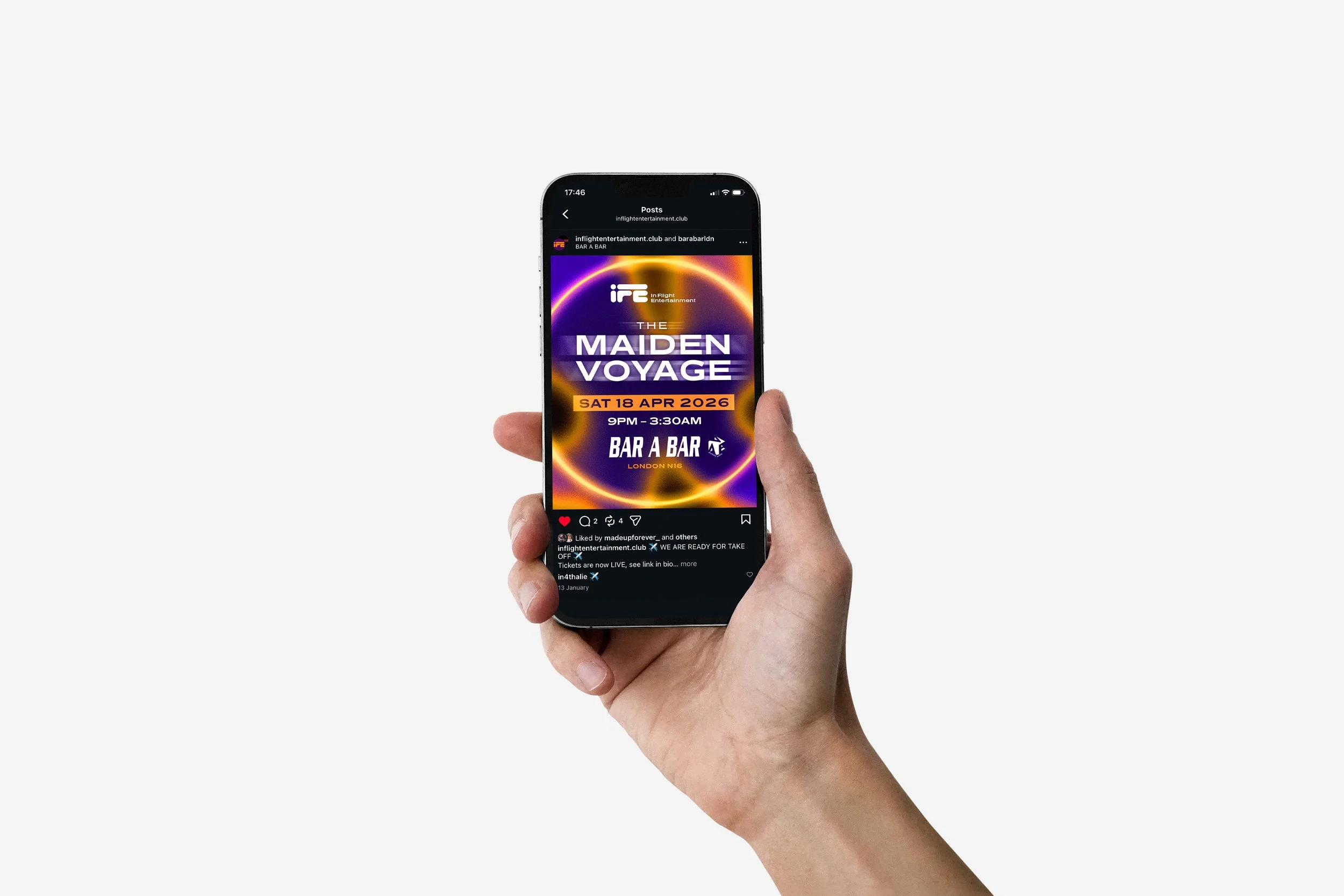 Designing the key artwork and marketing for debut night ‘The Maiden Voyage’ by In Flight Entertainment. A hardstyle night taking place in London.